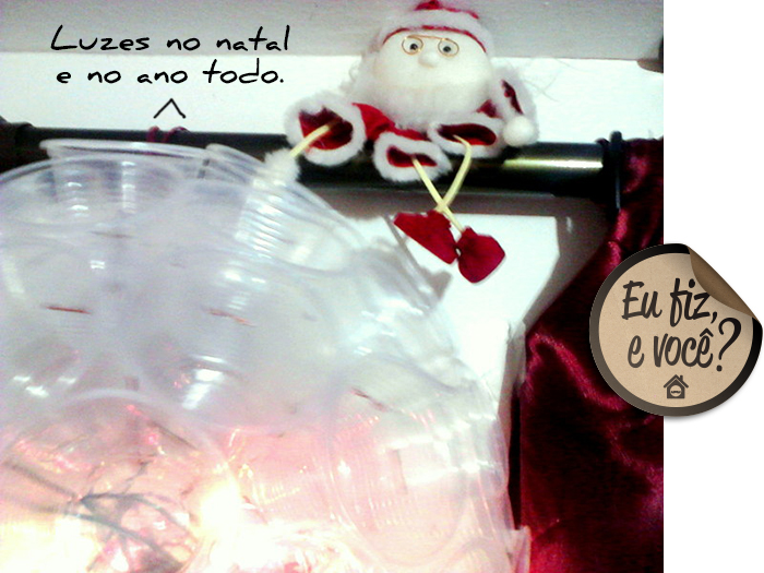 A Carla Flores fez a luminária de copinho descartável. Tenho certeza que o papai noel já vazou dali, mas a luminária… hehe