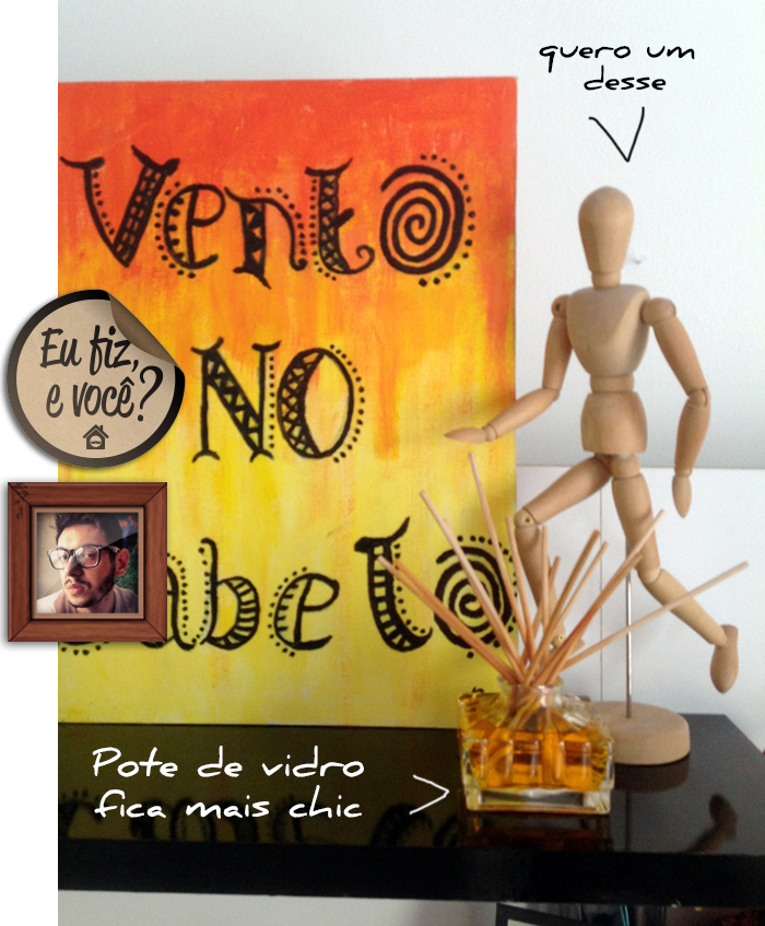 O Gabriel Freitas disse que o aromatizador deixou a casa dele com cheiro de loja de doces. Hehehe. Ele combinou tudo com algumas lembranças de viagens e um quadro handsmade.