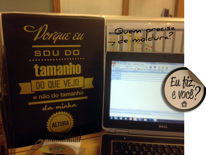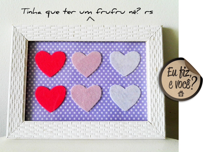 A Laura Campos catou a dica de reforma de moldura XingLing, deu uma frufruzada com feltro e montou um quadro exclusivo pra casa dela. Excelente dica pra meninas.