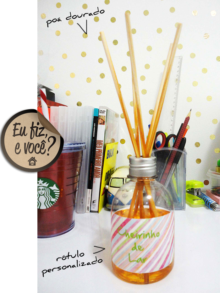 A Heloisa Rangel fez o aromatizador de ambientes e deu alguns de presente no natal, além de deixar um dando aquele cheirinho na mesa dela.