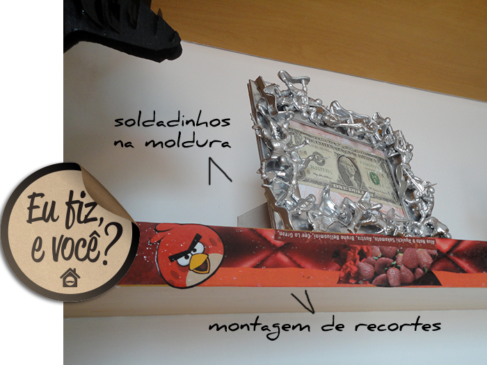 Amei o que a Érica Cordeiro fez com as molduras! Selecionou ótimas imagens! Os soldados na moldura, cara, achei muuuito legal também. E a minha arara ♥