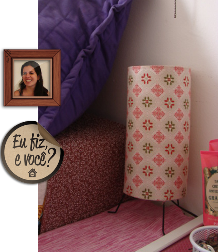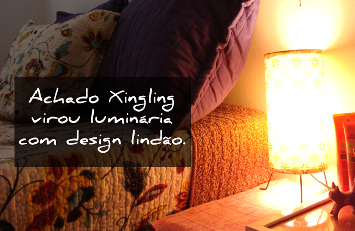 A Raquel Godoy pegou a idéia da reforma pra abaju e fez essa beleza aí. O segredo foi dar uma segunda chance pra uma peça xingling aplicando tecido de uma blusa de 10 conto que ela comprou sem experimentar, hahaha. Olha só que luz bacana que ficou!