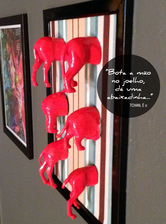 Já quase ia esquecendo. Prenda o quadro, de preferência, de frente pra entrada da casa. Pára pra pensar: se um elefante virado já dá sorte, imagina um zoológico todo com a bunda apontando pra porta!!!